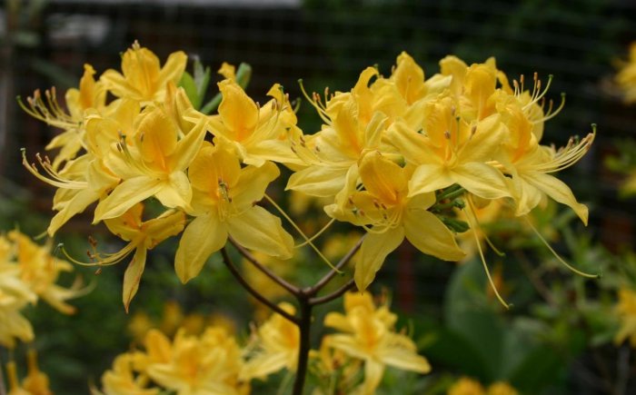 Листопадный кустарник высотой 1-2 м, редко 3-4 м. Диаметр кроны более 2 м. Кора светло-коричневая. Листья продолговато-ланцетные, длиной до 8 см и шириной 3 см, по краю мелкопильчатые и реснитчатые, летом зеленые, осенью желтые или багряные, сверху и снизу покрыты щетинистыми волосками. Цветет в мае — июне, около месяца. Цветки желтые или оранжевые, по 7-12 в соцветии, душистые, распускаются одновременно с листьями или чуть раньше, до 6 см в диаметре. Декоративен во время цветения и осенью благодаря яркой окраске листьев. Плоды — продолговатые коробочки, 2-2,5 см длиной. Среднерослый вид, годичный прирост 5—8 см, куст сильно ветвится. В природе куст живет около 100 лет, в культуре меньше (около 50). Светолюбив. Почвы предпочитает маломощные щебенистые, слабокислые или нейтральные. Полностью зимостоек в средней полосе России, зимует без укрытия. Ветки молодых растений рекомендуется на зиму пришпиливать к земле или укрывать лапником. Высаживают группами или одиночно на газоне, на опушке.