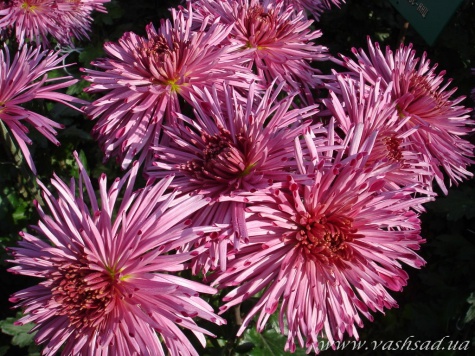 Куст высотой 50 см. Соцветия диаметром 6 см., вишневые с лимонным центром, анемоновидные. Начало цветения раннее — август.